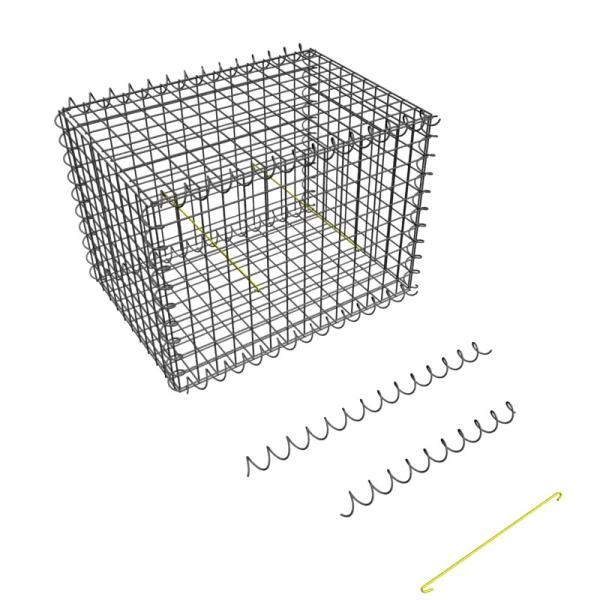 1. let two adjacent stone cage meshs be perpendicular to the ground.on both sides prepare the spiral allgnment as showed i nthe schematic a 90 angle at the mesh connection,adjust the angle to make the spiral itself inertia just drop it.